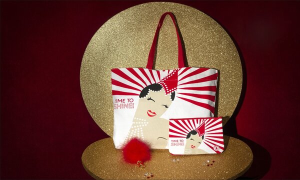 Fall for the casual touch of the Moulin Rouge® personalised Tote bag that shimmers with a smiling dancer. Pair it with the Dancer pouch: this beauty case is the perfect accessory to slip into your bag.