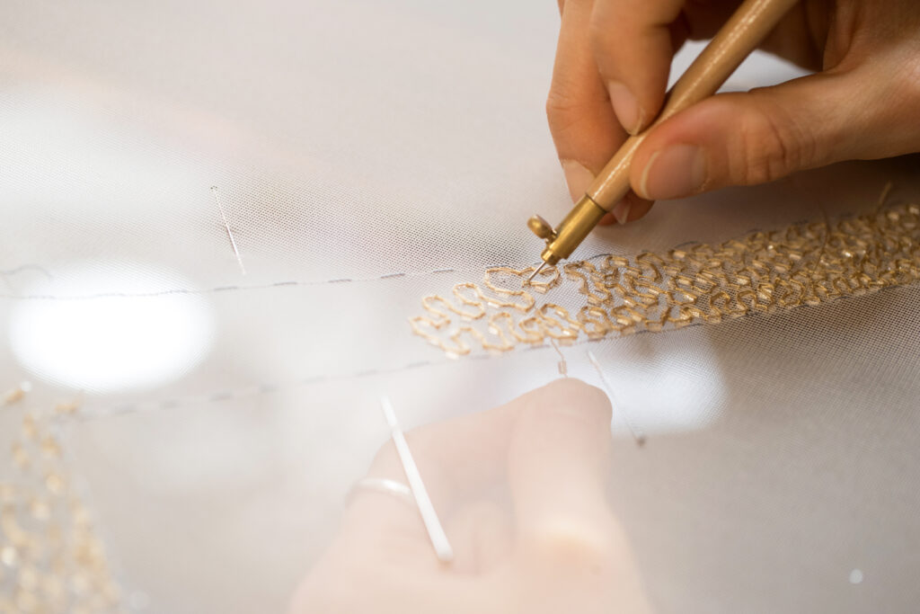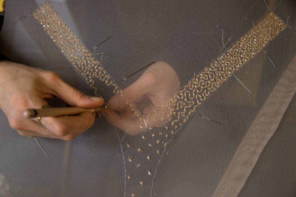 Weave your way to the Atelier Valentin and enter the dazzling world of our passionate embroiderers, who embellish the most beautiful show costumes with beads, rhinestones and sequins. Glitter, gemstones and golden threads collide…